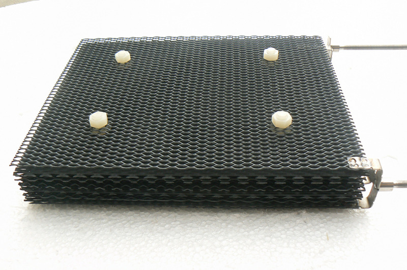 我公司主要針對(duì)此行業(yè),設(shè)計(jì)并研發(fā)了一種具有活化層的銥鉭陽極板,并且也申請(qǐng)了實(shí)用新型專利,該陽極在鈦基體上涂覆由錫和銻氧化物組成的活化層,一方面能使電解液難以滲透到鈦表面,氧原子或02-離子向鈦基體的擴(kuò)散也受到了阻擋,從而避免了Ti02的生成,同時(shí)也提高了銥鉭涂層的析氧過電位。主要在有機(jī)廢水處理中體現(xiàn)其獨(dú)特的優(yōu)越性,能使有機(jī)物直接在陽極表面被氧化成CO2和水,也防止了原生態(tài)的氧原子進(jìn)入涂層內(nèi)部破壞涂層,從而增強(qiáng)陽極使用壽命。