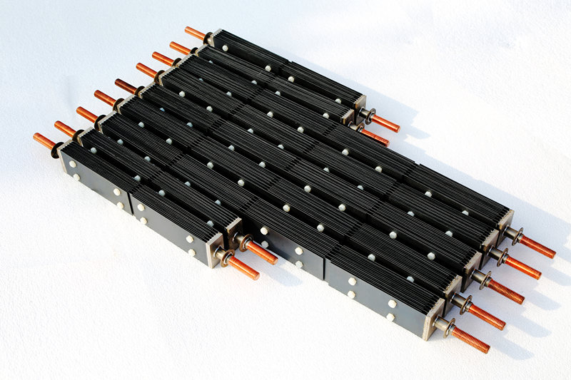 3、可進步電流密度。隔閡法出產氯堿中,石墨陽極的作業電流密度為8A/dm2,鈦陽極可成倍地添加,達17A/dm2,這樣在電解廠房、電解槽相同的條件下,產值可添加1倍,進步了單槽出產能力,有效地進步了勞動出產功率。在高作業電流密度下進行電解時,運用鈦陽極比較適合。